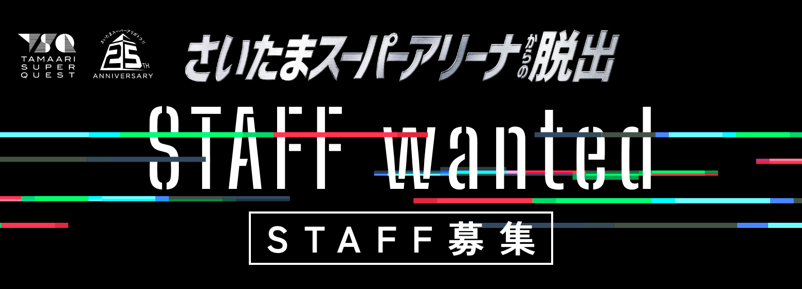 TAMAARI SUPER QUEST THE FINAL「さいたまスーパーアリーナからの脱出」では、一緒にイベントを盛り上げてくれる方を大募集しております!イベントが好きな方、謎解きが好きな方、たまアリが好きな方などなど、ご応募お待ちしております。